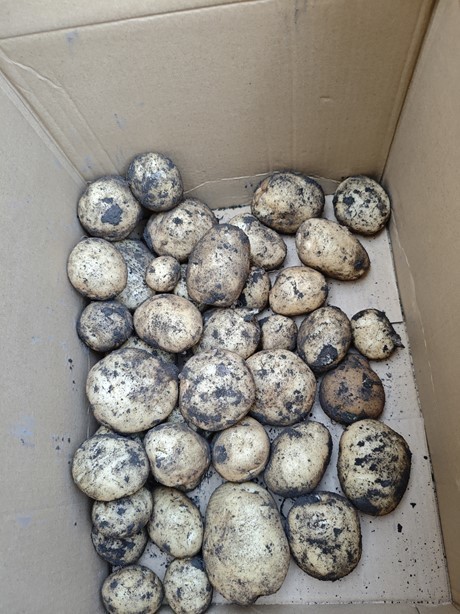 秋ジャガイモ収穫です。春ジャガイモに比べると収穫量は少ないですが、なんとか収穫です。