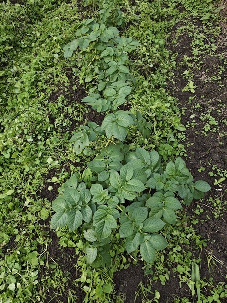 秋ジャガイモ、暑さで一部種芋が腐ってしまいましたが、なんとか育ってくれました。