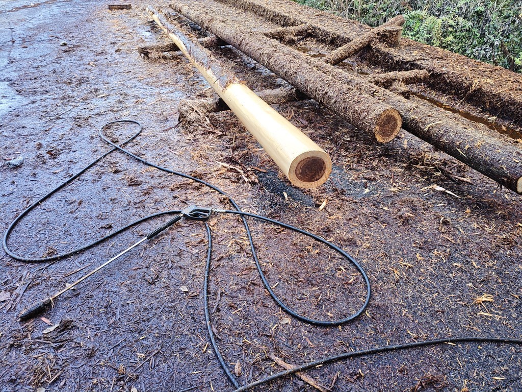樹皮をむくのは水圧をつかいます。冬は寒いです。