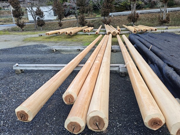 磨丸太を寒風と日光で乾燥させて綺麗な色に仕上がるように表面を丁寧に乾かします。